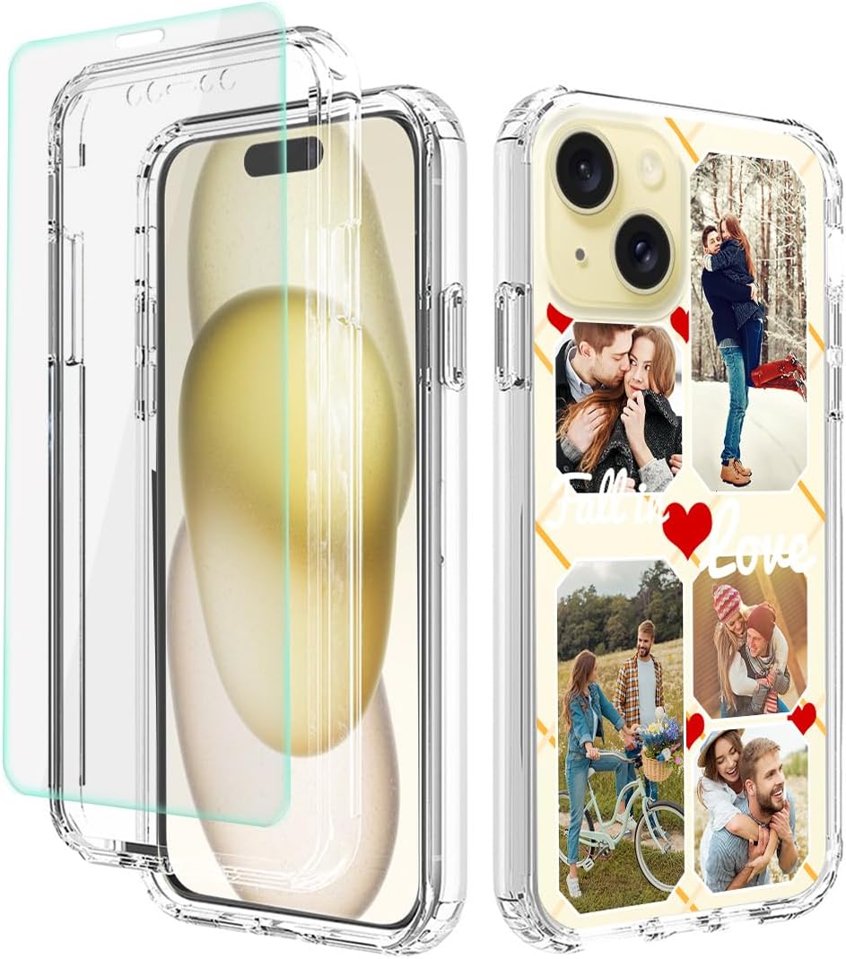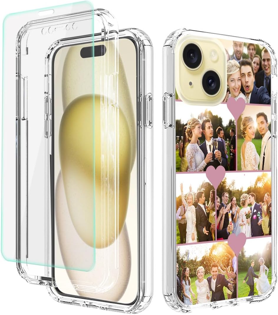 Features:1.The customized Military Grade cases are lightweight, strong,and made of durable TPU material. They are easy to install or remove, no tools needed. Perfectly compatible with iPhone 15.2.Military Grade Protection: 3in1 dual-layer case provides 360 degree full body coverage protection. Premium hybrid hard Polycarbonate (PC) + soft Thermoplastic Polyurethane (TPU/Silicone) + Tempered Glass Screen Protector. 3.Precisely engineered to fit your phone perfectly. The case has precise cutouts for speakers, charging ports and audio ports. It covers the buttons to provide a better protection. Never affect your normal use.4.Supporting customizing your design on the clear back plate.You can choose your favorite picture from your personal phone or social media such as facebook or instagram.We will expertly position your photo for the best fit.5.With efficient wireless charging transmission, The Personalized Soft Phone case leaves wireless charging unaffected..6.A nice exclusive gift for your families, friends and yourself for Birthday / Wedding Anniversary / Valentine's / Mother's / Father's / Thanks Giving's / Christmas / New Year's Day.Customization Guidline:Step 1: Click "Customize Now" button and "UPLOAD YOUR IMAGE" button to add your personalized picture details to the case cover.Step 2: you can edit the size and position of your photo and text to fit the way you want.Step 3: after double check there's no problem,Click add to cart to place your order.NOTE:1. make sure do not order wrong size(you can find the model of your phone by this way: setting>general>about>model name)2. Upload a file no larger than 15MB in JPEG or PNG format.3. Pixel Requirements: Lowest Pixel 550X1100; Resolution Ratio up 300dpi; Aspect ratio almost 2:14. Please mind the camera hole and aviod the portrait on the top of image