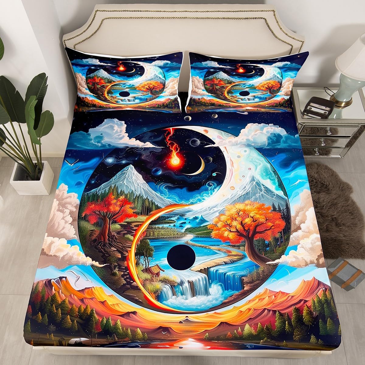 Package Include:fitted sheet,Pillowcase.No flat sheet or top sheet. Fitted sheet set pattern bedding set, simply decorating your rooms any time you want, bringing you fresh feel for year round use. Made from polyester,the sheet set offers long lasting strength,anatural resistance to shrinking and a noticeably soft hand feel. Size Information: Twin size : 1 Fitted Sheet 39"W x 75"L x 16"H ,99 x 190 x 41cm , 1 pillowcase 20" x 30", 51x75cm . Full size : 1 Fitted Sheet 54"W x 75"L x 16"H ,137 x 191x 41cm ,2 pillowcases 20" x 30", 51 x 75cm . Queen size : 1 Fitted Sheet 60"W x 80"L x 16"H ,152 x 203x 41cm ,2 pillowcases 20" x 30", 51 x 75cm . Personalize your bedroom: Beautiful design and colorful print, makes your bedroom unique and brings you a wonderful dream. Washing instructions: Machine wash separately in cold water,hang dry, do not bleach. Occasion: The soft Fitted Sheet bedding sets designed for Children ,Adult, Men, Women, Teens. This Fitted Sheet set is also suitable for full seasons, Spring, Summer, Autumn and Winter.